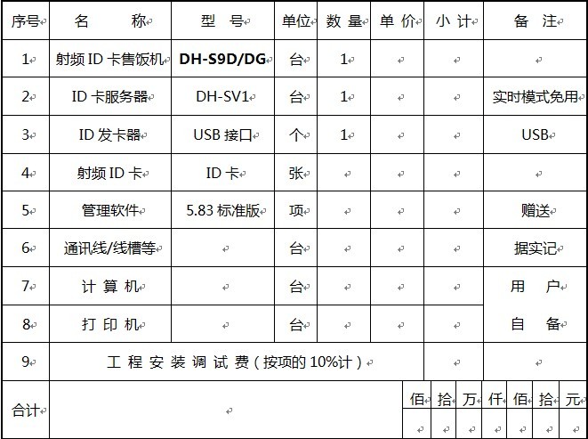 ID卡一卡通售飯系統(tǒng)報(bào)價(jià)清單: